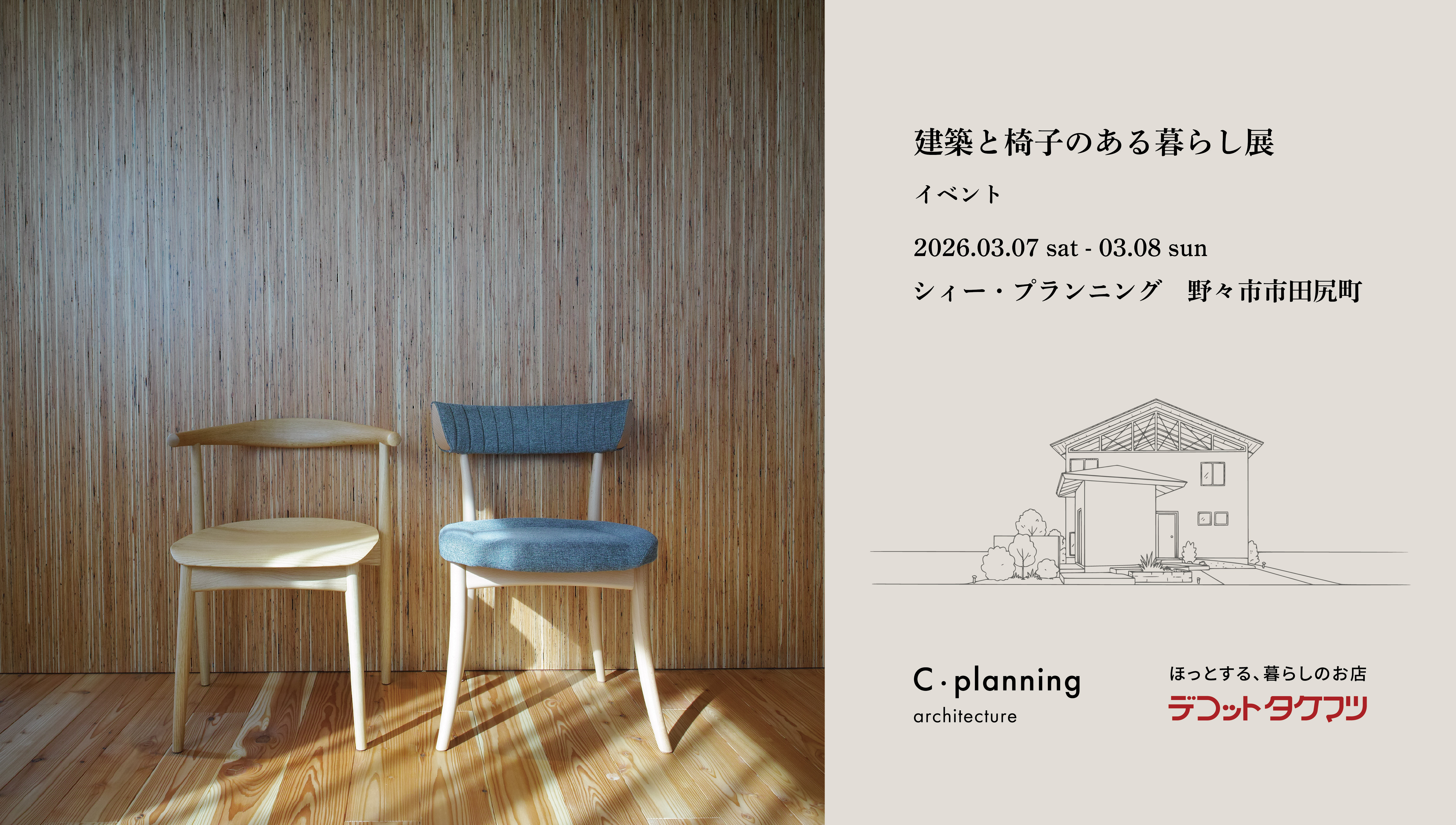 木の温もりある家具を提案するデコット・タケマツさんの椅子と木の温もりある建築を提案するシィー・プランニングのコラボレーション企画です。